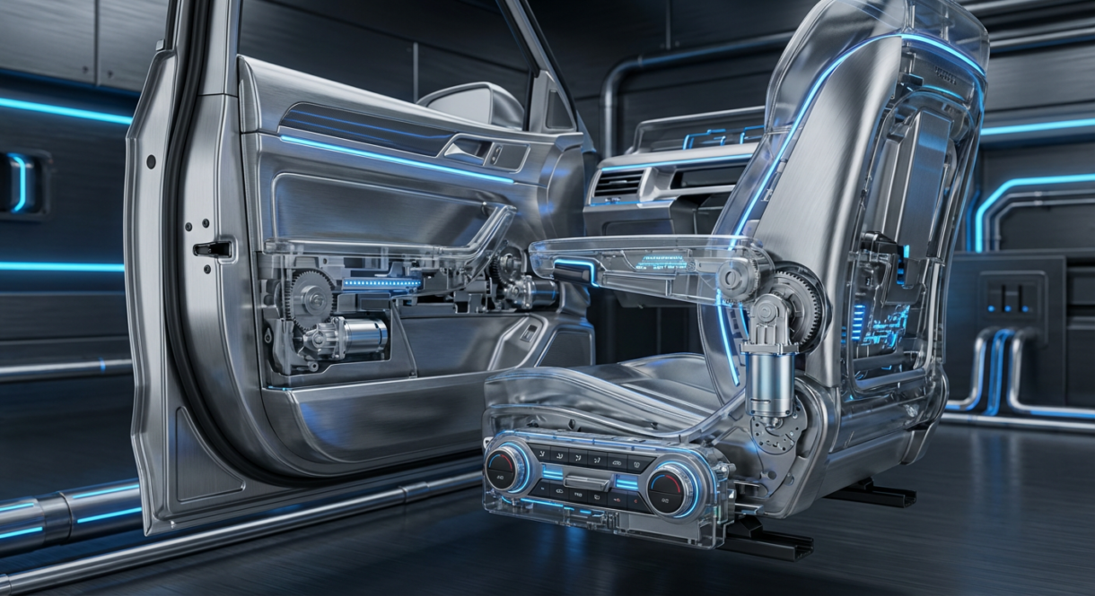 Different automotive mechanisms—like seats or mirrors—require precise torque–speed matching to ensure smooth and quiet operation.