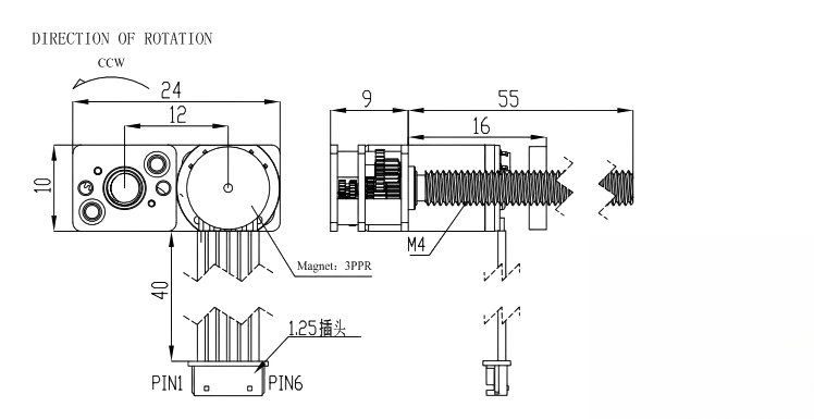 12mm Diameter Brushed Motor with M4 Screw Output Shaft Gearbox
