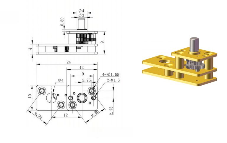 Index Gear Ratio Actual Ratio Stages Overall Size Output Direction Motor Gear Teeth Motor Gear ID (mm) Rated Torque (g·cm) Allowable Peak Torque (g·cm)