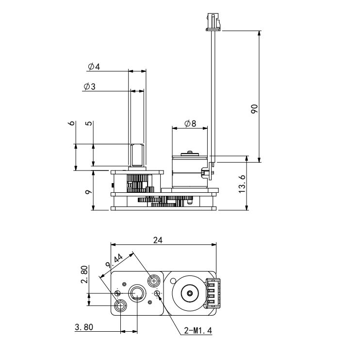 This model combines a micro stepper motor with a parallel output gearbox, focusing on controlled incremental movement rather than continuous rotation behavior.